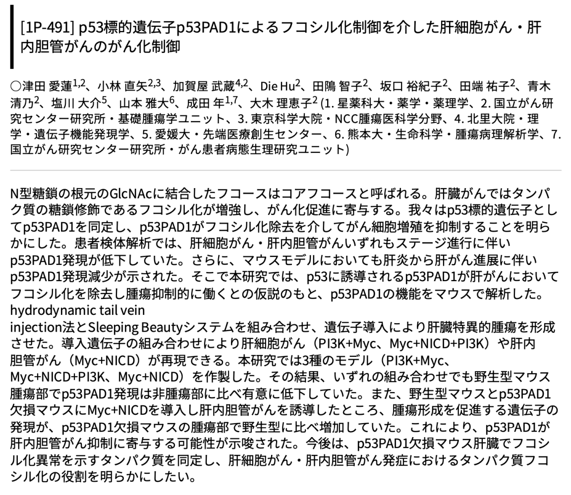 「p53標的遺伝子p53PAD1によるフコシル化制御を介した肝細胞がん、肝内胆管がんのがん化制御」